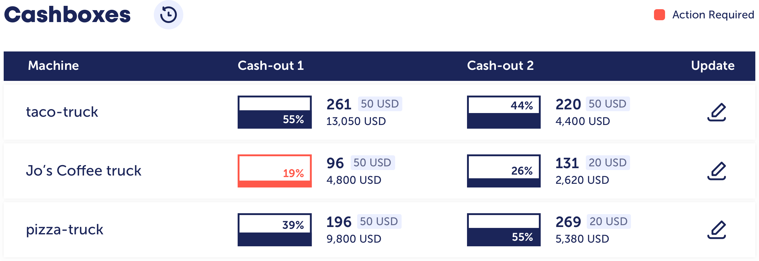 Panels feature visual cues to indicate when action is needed. Notifications keep you proactively managing your machines, funds, and compliance verifications.