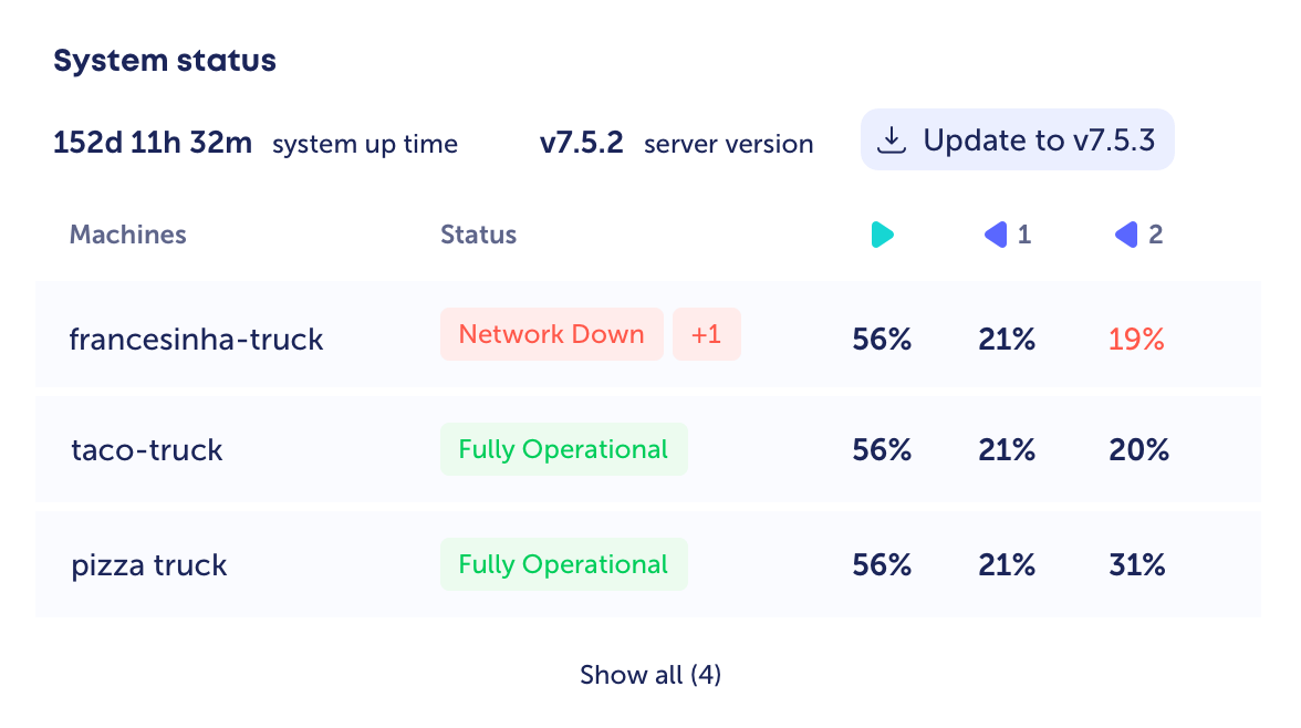 Dashboards and machine profile pages summarise all you need to know about the health and performance of your fleet.