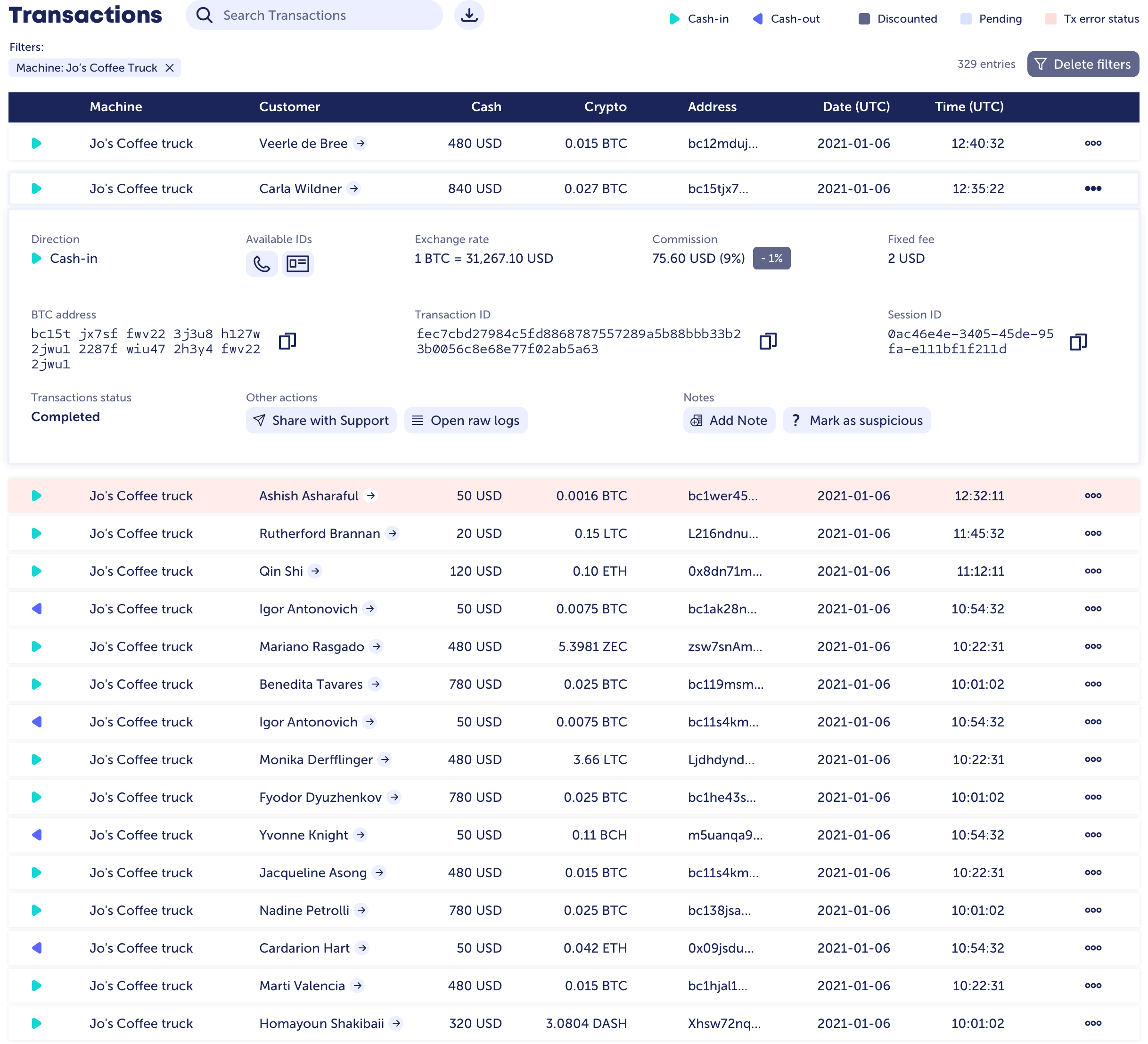 Add a note for one of your support reps, mark a transaction as suspicious to revisit with a closer eye, or export just a single transaction for our support to take a look at.