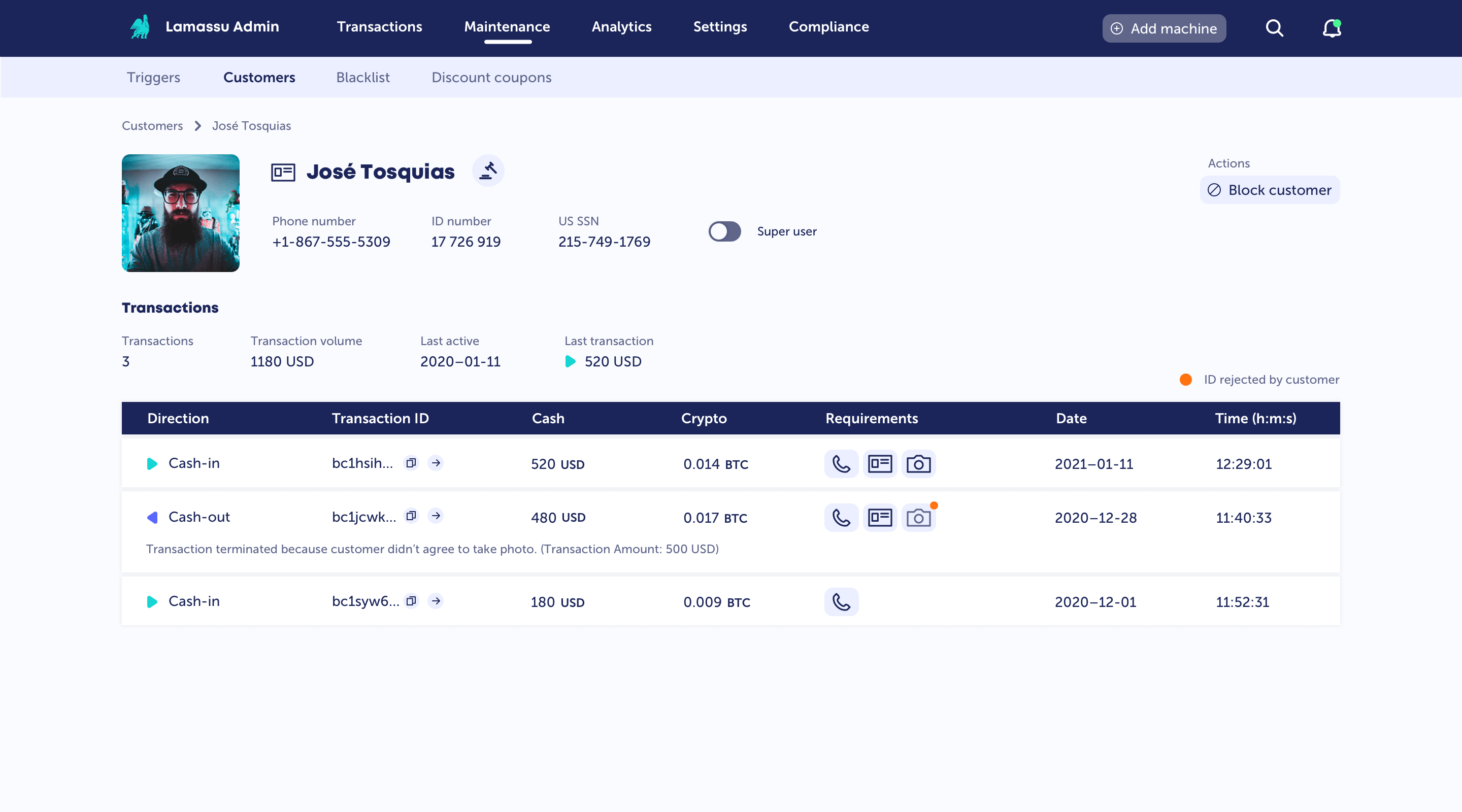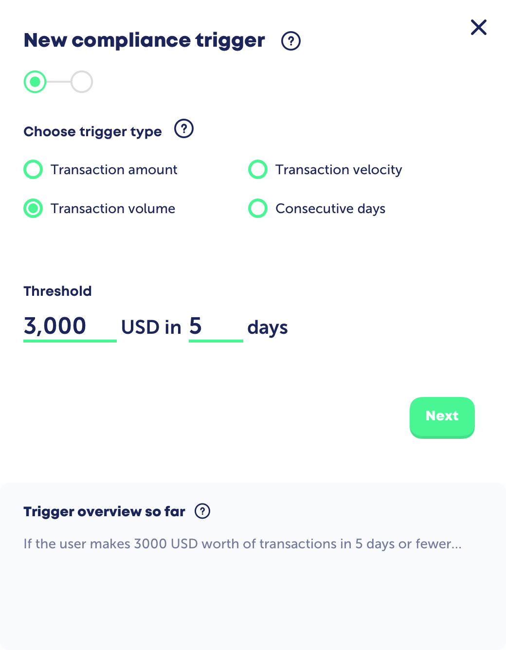 We approach compliance in two ways. The first is to strip the complexity and bureaucracy from the user interface. The second is to give the operator all of the tools necessary to power their complete compliance plan, regardless of the jurisdiction. We do this by analyzing the entire process from collection to application of triggers and rules to satisfy the requirements of the local regulators.
