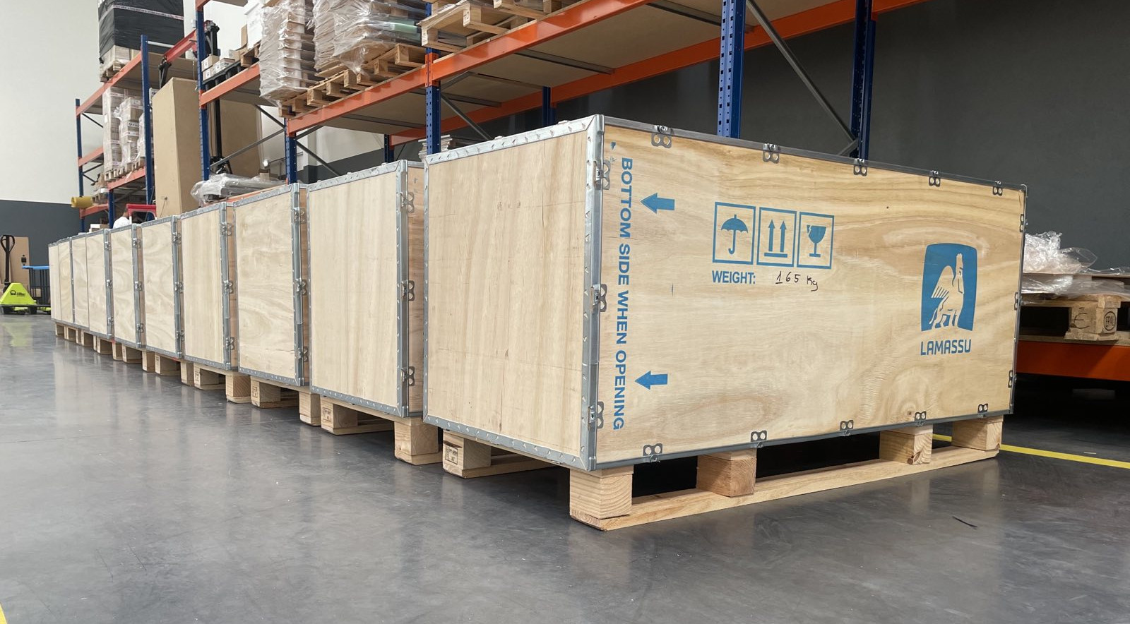 We pack your machine with the utmost care, using superior packing materials and reinforced, custom made heavy duty wooden crates. You can see an example of how they look here. Multiple shipping services are offered. The time of transit depends on the destination and import process, though it’s generally between 6 to 12 days.